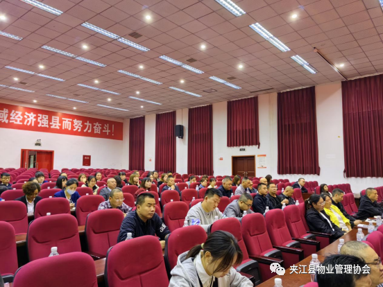 10月31日,夹江县物业管理协会在县政府常委、副县长方第兵、县住房和城乡建设局副局长李航牵头主持包括县委基层治理办、公安、消防、综合执法、街道、社区等政府各职能单位相关部门32家及协会21家物业会员服务企业,共计100余人参加培训会。