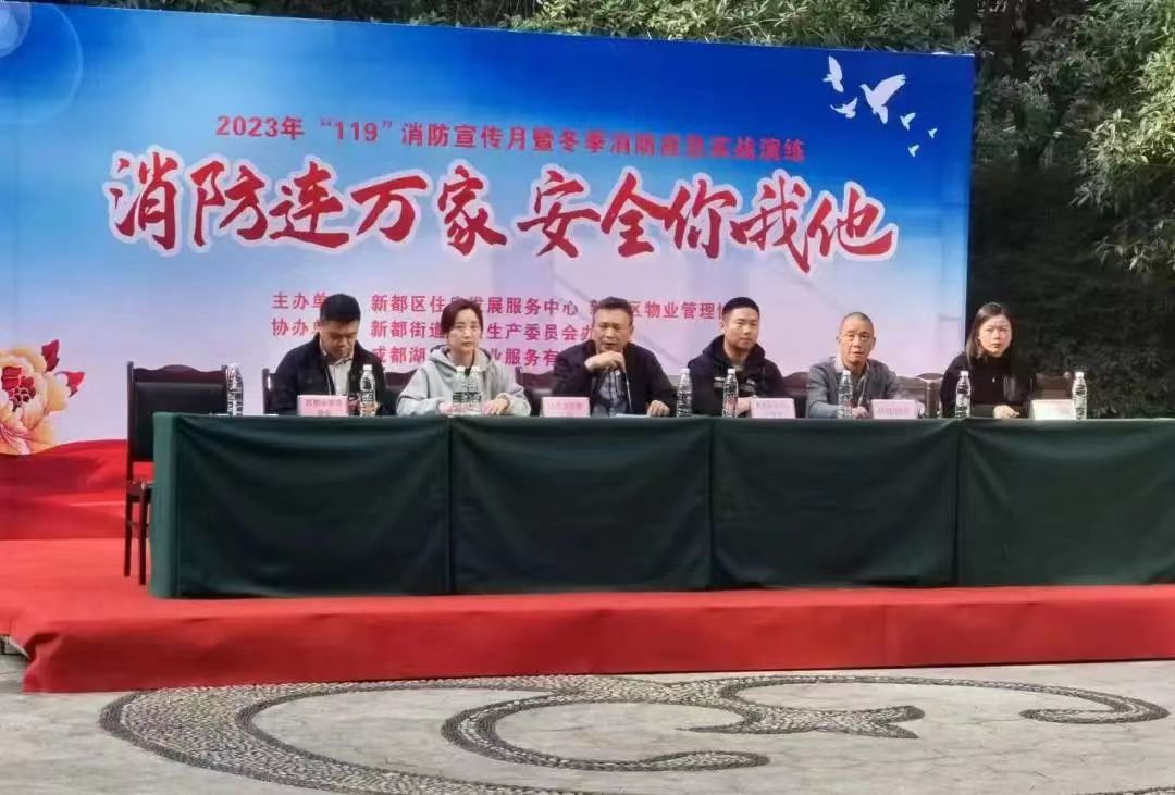 为切实做好新都区物业行业消防安全工作,持续提升物业服务企业火灾应急处置能力,全力保障小区安全稳定运行,不断深入宣传消防应急常识,牢固树立消防意识,真正掌握火灾事故现场应急扑救与救护流程。2023年11月9日,成都市新都区住房发展服务中心组织开展的“冬季消防应急实战演练”正式开启了“119消防宣传月”活动,新都街道办事处、区物业管理协会、成都湖景湾物业服务有限公司等单位参加了观摩。