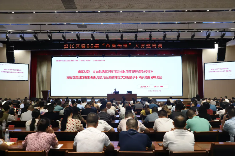 为深入学习贯彻习近平总书记关于基层治理的重要论述精神,牢固树立“温江一家亲”理念,大力推进基层治理体系和治理能力现代化建设,8月21日,区委组织部、区委社会工作部、区委党校、区住建局联合举办第65期“鱼凫先锋”大讲堂培训会,区级有关部门(单位)分管领导和科室负责人、各镇(街道)分管相关工作领导和相关科室负责人、各村(社区)党组织书记、有关公共服务行业公司相关负责人等200余人参加培训。 培训会上,四川大学公共管理学院社区治理与现代物业研究中心副主任,四川省房地产业协会物业专委会副主任伍三明对《成都市物业管理条例》进行了深入解读,比较了新旧条例之间的区别,总结了物业管理委员会、业主自行管理、物业服务收费等条款的重点内容。 学员们纷纷表示,伍三明老师讲的每一个要点,都与大家业务工作密切相关、紧密相连,讲解深入浅出,操作性强,让大家受益匪浅。通过此次实务讲解培训,增强学员的法治意识,进一步提升了物业管理工作的法治化、规范化、专业化水平。 温江区委党校原创出品