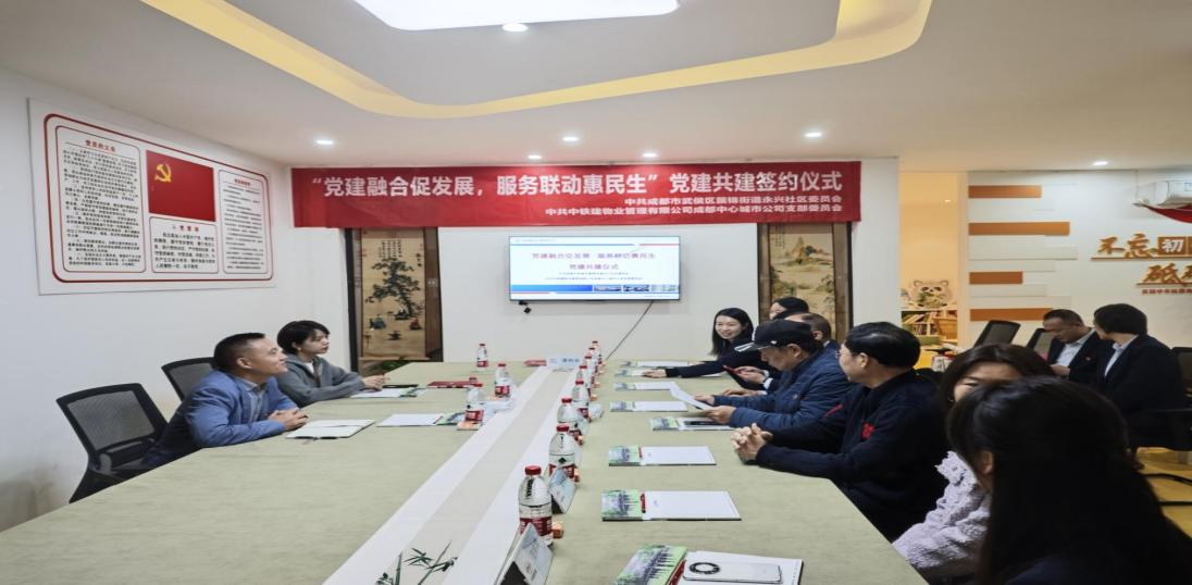 为加强基层党建引领,携手搭建党建共建平台,共同绘制社区治理新蓝图,11月13日上午,永兴社区党委与中铁建物业成都中心党支部在西派城A区党群服务中心开展了“党建融合促发展,服务联动惠民生”党建共建签约仪式。