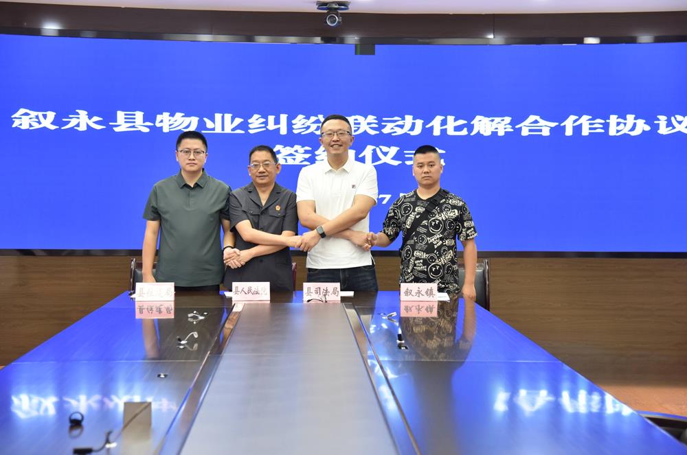 县法院、县司法局、县住建局、叙永镇相关负责人一起出席了叙永县物业纠纷人民调解委员会挂牌暨联动化解合作协议签约仪式。