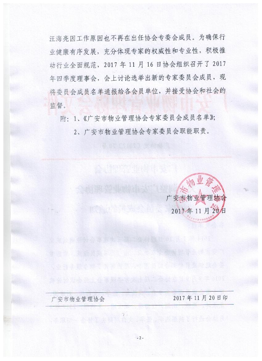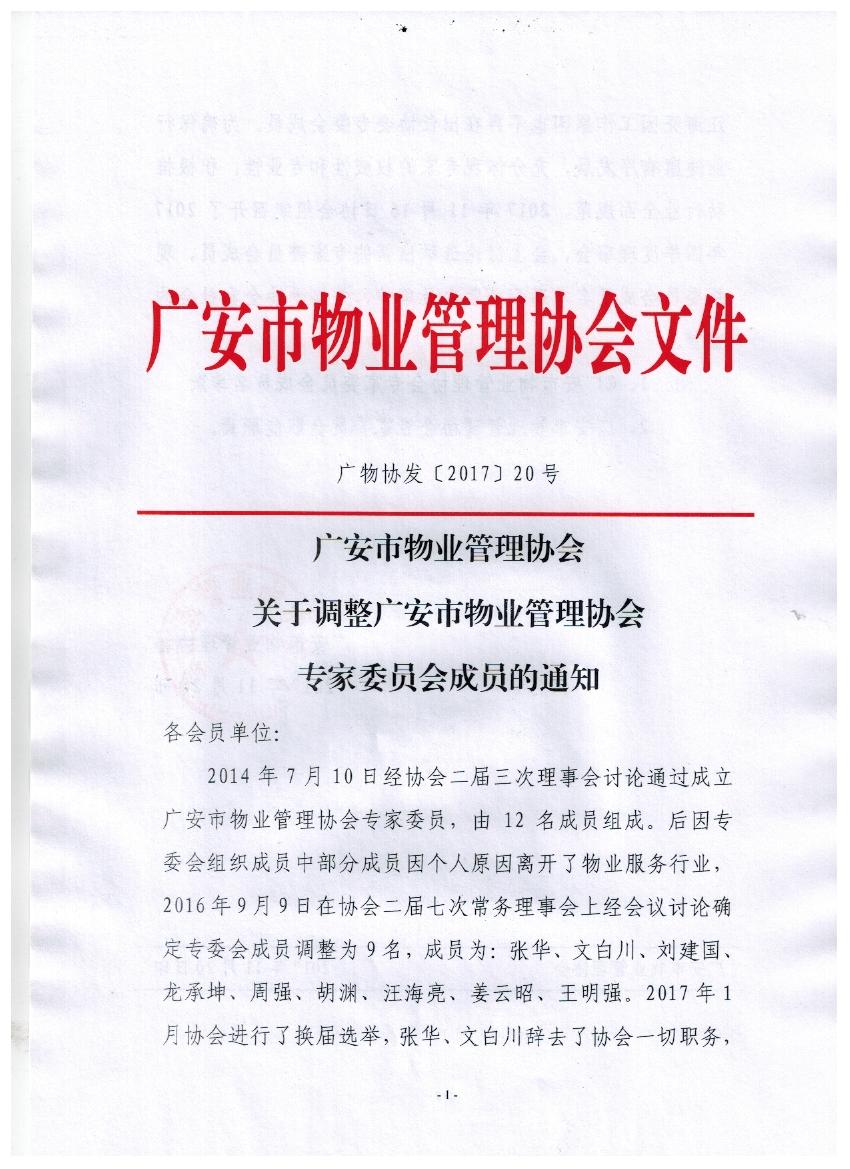 【广安】关于调整广安市物业管理协会专家委员会成员的通知