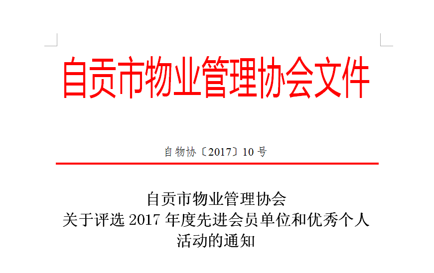 附件:1.《自贡市物业管理协会2017年度优秀会员单位申报表》