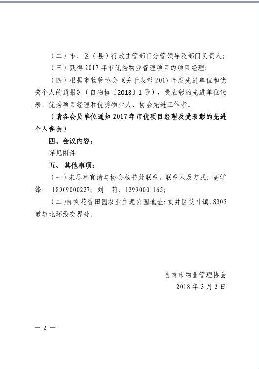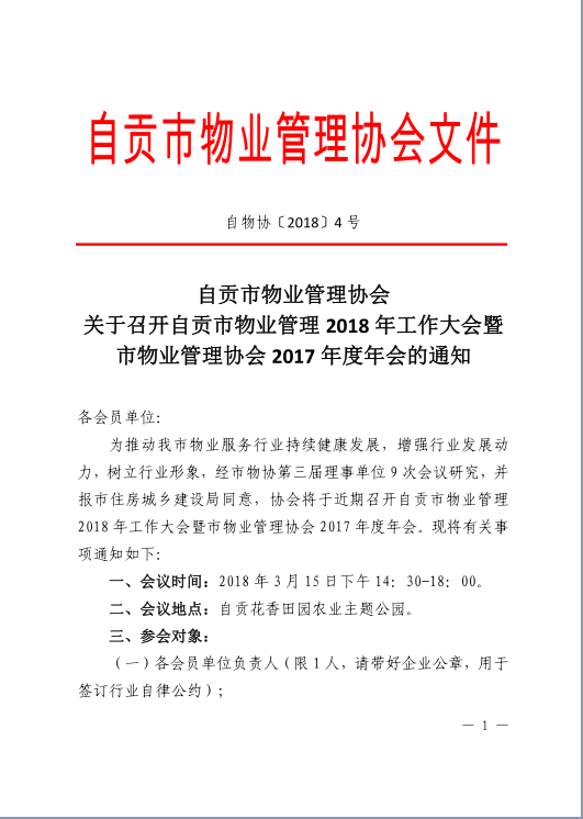 【自贡】关于召开自贡市物业管理2018年工作大会的通知