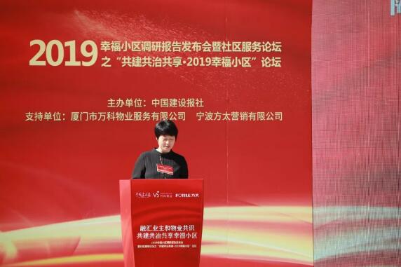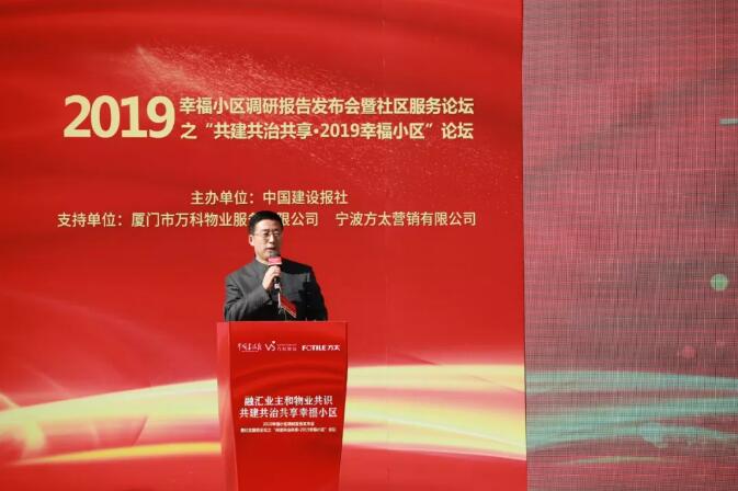 11月15日上午,由中国建设报社主办的“融汇业主和物业共识 共建共治共享幸福小区”2019幸福小区调研报告发布会暨社区服务论坛之“共建共治共享·2019幸福小区”论坛在厦门圆满举办。