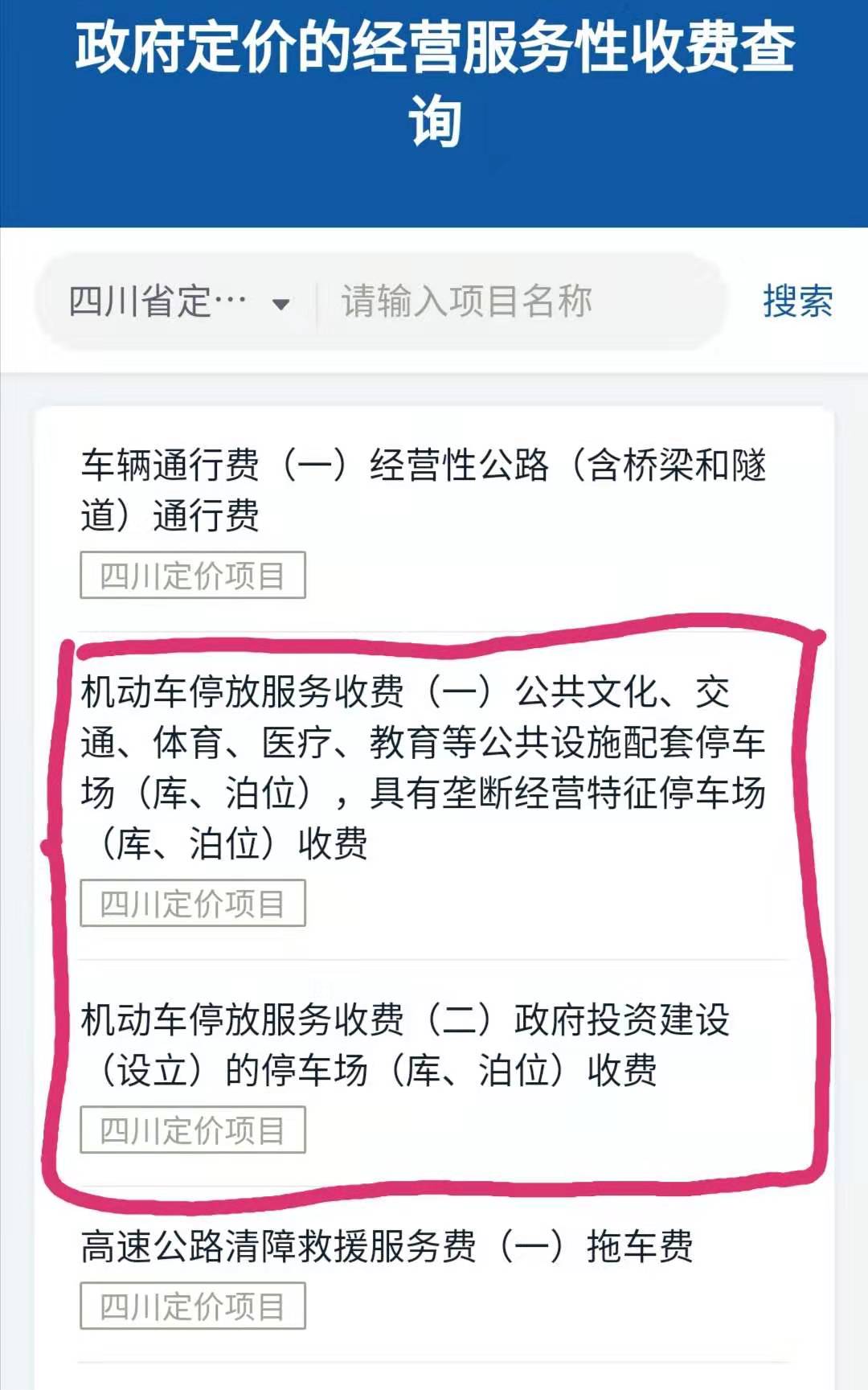 从中国政府网“国家政务服务平台”公布信息显示,已为政府定价的经营服务性收费建立全国政府定价的经营服务性收费查询平台,与物业管理密切相关的住房物业服务费(保障性住房和前期物业管理)、机动车停放服务收费(不含住宅小区停车服务收费)、生活垃圾处置收费等可点击平台查询(可通过国务院客户端查询小程序),四川省与此相关服务收费,均可在国家建立的收费平台小程序查询。