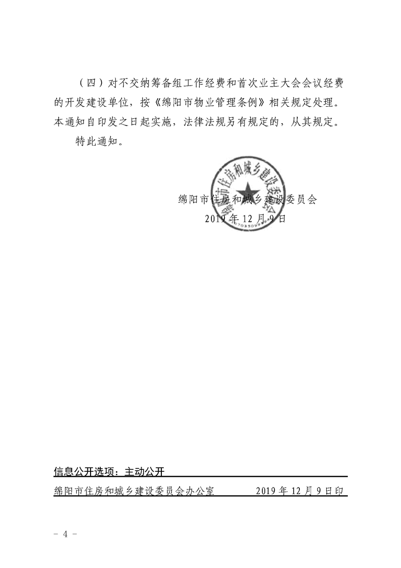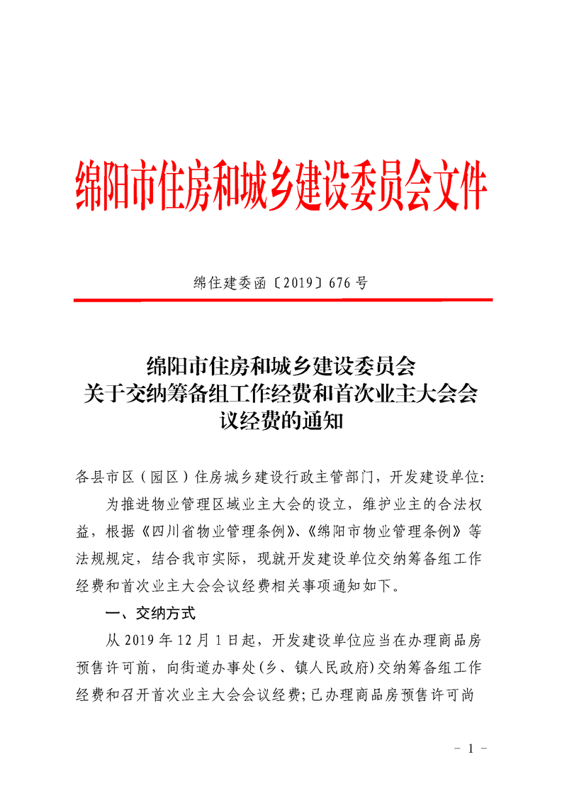 【绵阳】关于交纳筹备组工作经费和首次业主大会会议经费的通知