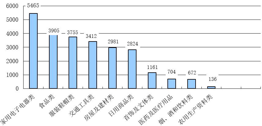 按商品种类来分,涉及家用电子电器、食品、服装鞋帽类的消费者投诉居前三位(见图2)。