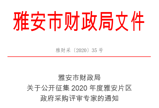 【雅安】雅安市财政局关于公开征集2020年度雅安片区政府采购评审专家的通知