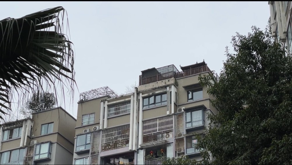记者暗访了成都市中心的几个小区,看到目前依旧有一小部分的房屋顶楼存在搭建雨棚或是房屋等情况。物业工作人员均表示,这些违章搭建都是很久以前搭建的,现在政府管得很严,绝不允许任何人再私自搭建,甚至“材料都拉不进来小区”。